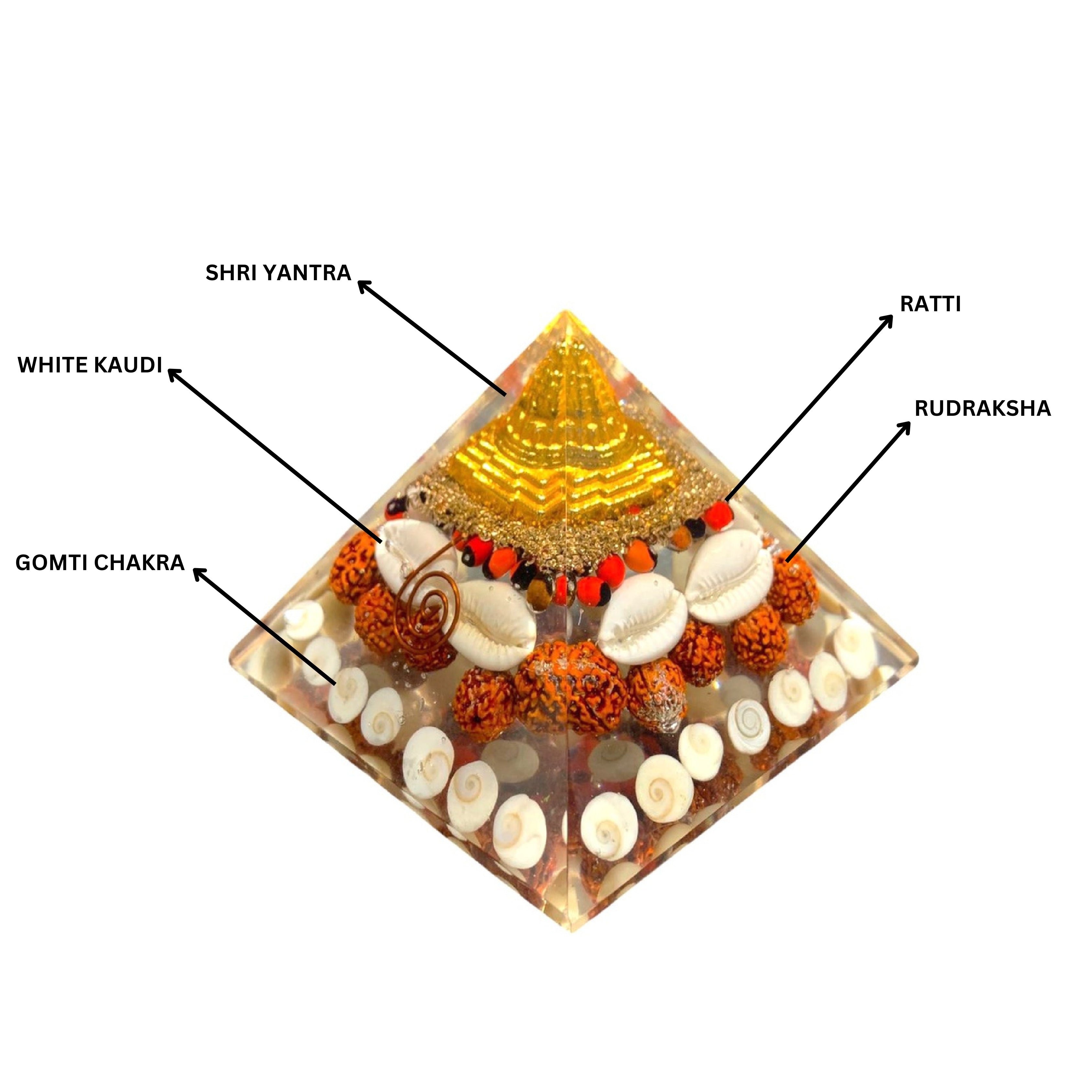 Handcrafted Laxmi Pyramid: Our Laxmi Pyramid, also known as the Lakshmi Pyramid, is meticulously handcrafted and undergoes thorough quality checks. Designed with Gomti Chakra and Shree Yantra, it is made from naturally sourced materials, making it a beautiful and organic addition to any space.