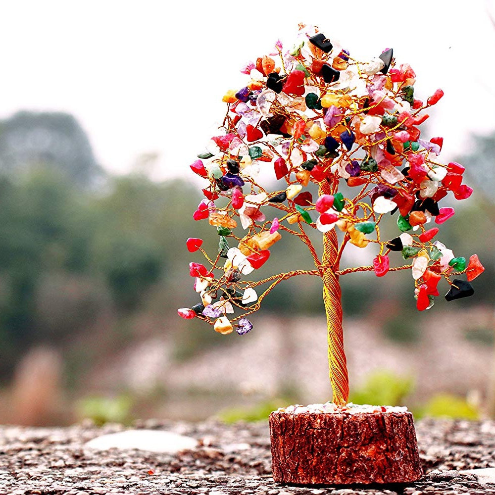 A beautiful Handmade Seven Chakra Gemstone Chip Tree. The specific gemstones used in a tree is predisposed to influence the surrounding aura and the color energies associated with it works in the direction prescribed to draw luck and abundance in life.