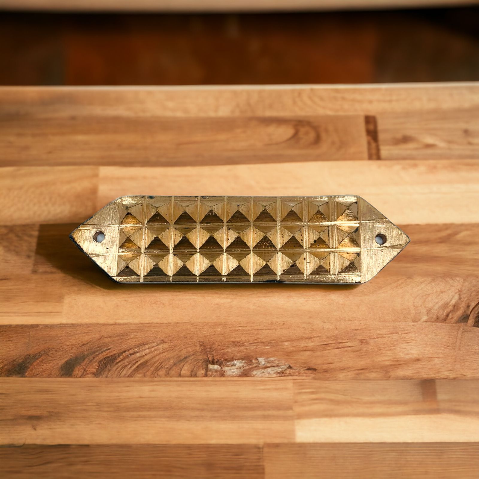 A pyramid divider is used for correcting Vastu or feng shui defects. If you have a kitchen and toilet facing each other, a pyramid divider can be placed at each entrance of both locations. It will work as a partition. Any extended corner can be rectified by cutting of with a copper pyramid divider It can be used to cut off any negative objects facing your door Toilet on the wrong side can be cut off with the pyramid divider (to cut off negative energy) Easy Vastu remedy without breaking