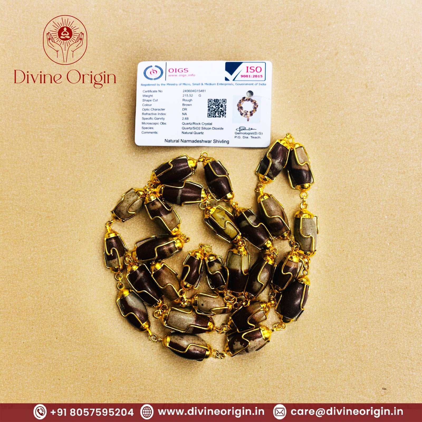 It is a attractive and unique Narmadeshwar Shivling Kantha with Gold Plated Cap Chain. Narmada Shivlings are obtained from the River Narmada in Madhya Pradesh. Narmada Shivlings are considered to very auspicious as that are made naturally in the river bed. It is believed that where there is Narmada Shivling lord Shiva resides there. One can get rid of all ailments by performing daily puja to Narmada Shivling. The Bad Effects of planet Saturn is eliminated by keeping Narmada Shivling at home. One shall perform daily puja of Narmada Shivling to achieve success in life. It brings prosperity to the wearer. Narmada Shivlingam protects your place from all tantrik effects. No evil spirit can enter the home where it is kept. We provide you the finest quality of pendant as we believe that our customer's satisfaction should be our first priority. Narmadeshwar Shiva Ling- As the name suggests is found in the Narmada river in India which flows in the states of Madhya Pradesh and Maharashtra. Also these ling is called 'Banaling'. It is believed to be a manifestation of Lord Shiva and it helps the devotee in connecting with supreme Lord Shiva. It is also believed that where there is Narmadeshwar Shivling, Lord Shiva Himself resides there. The history of Narmadeshwar Shiva Linga dates back to centuries and the formation of this Shiva Linga is very unique in its own right. Its b