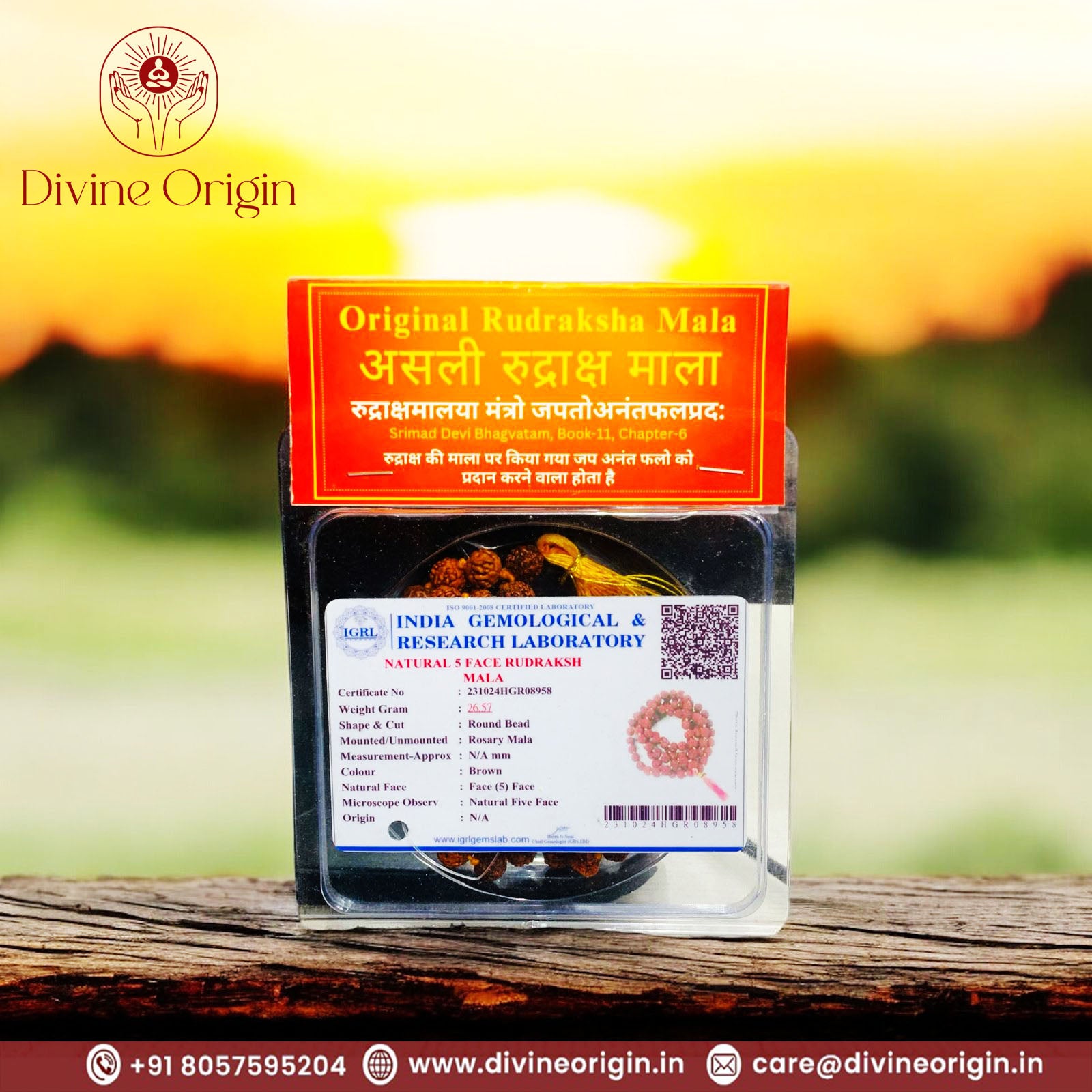 Natural 5 Faced Rudraksha Mala With Lab Tested Card