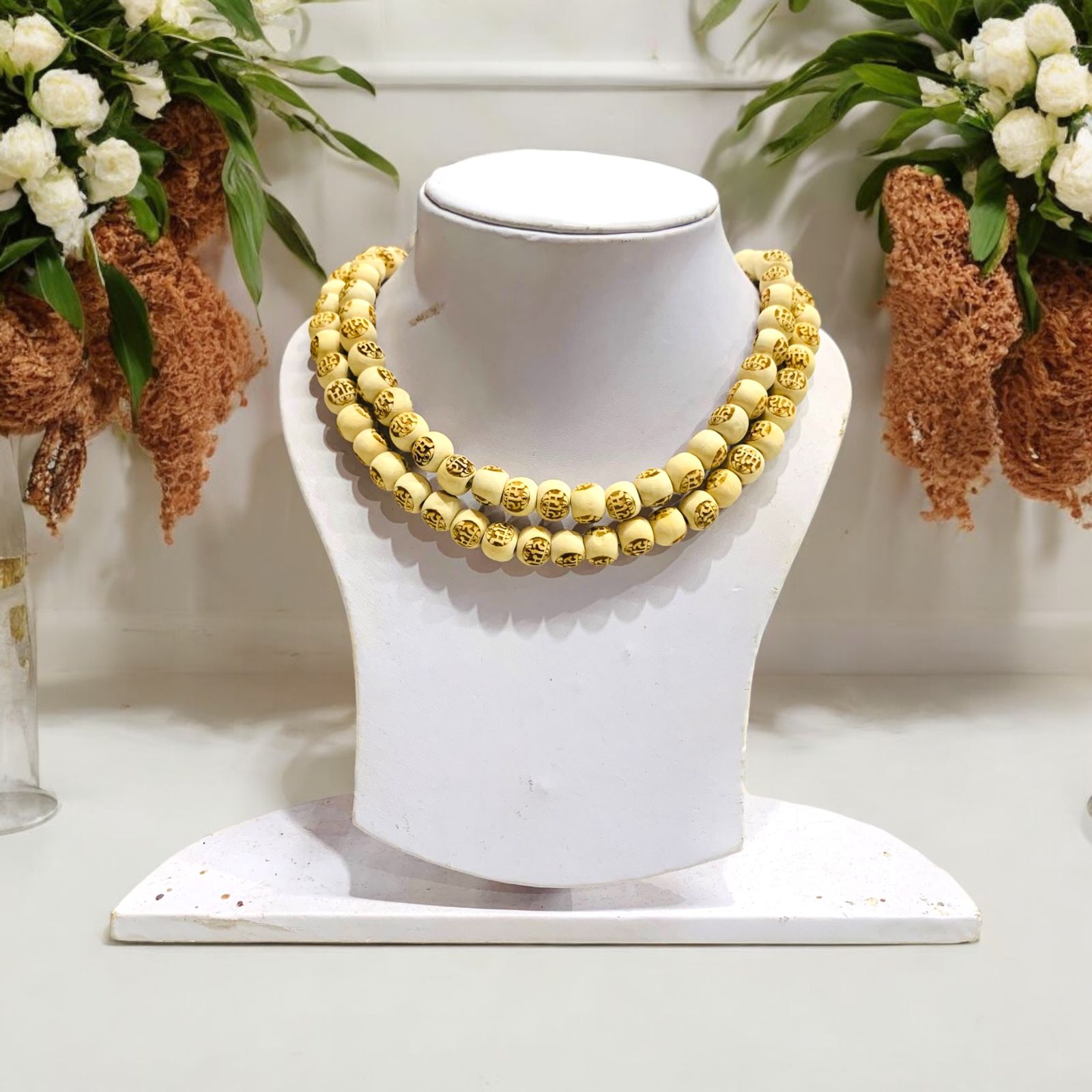 Tulsi Mala is a sacred necklace made from the stems of the holy Tulsi plant (Ocimum sanctum). Tulsi, considered the most sacred plant in Hinduism, is revered for its spiritual potency