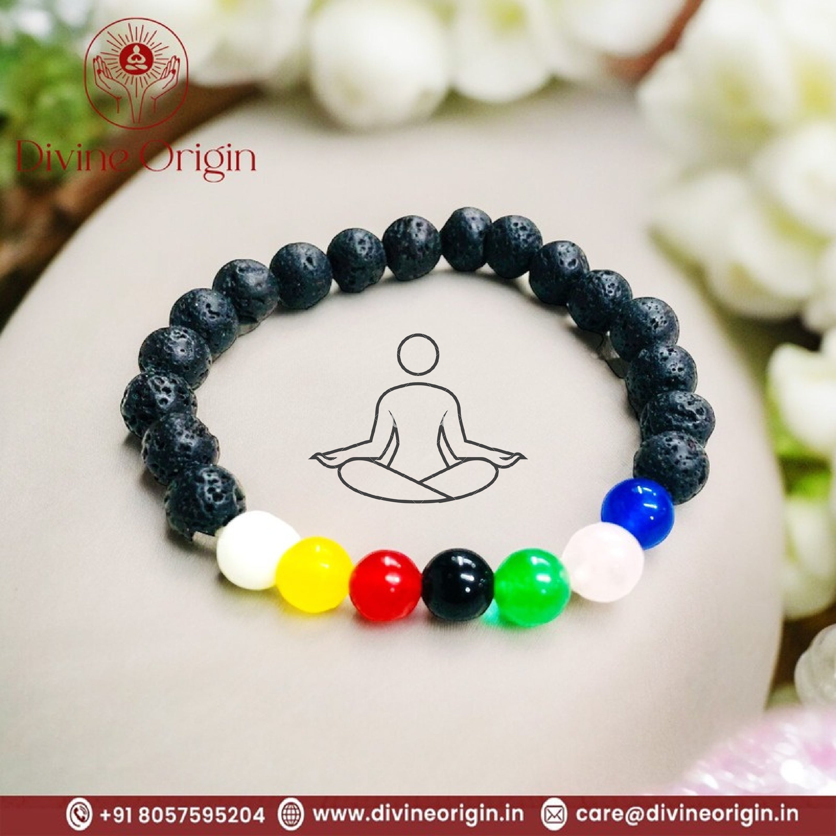 The Seven Chakra Yoga Bracelet With (Lava Beads)