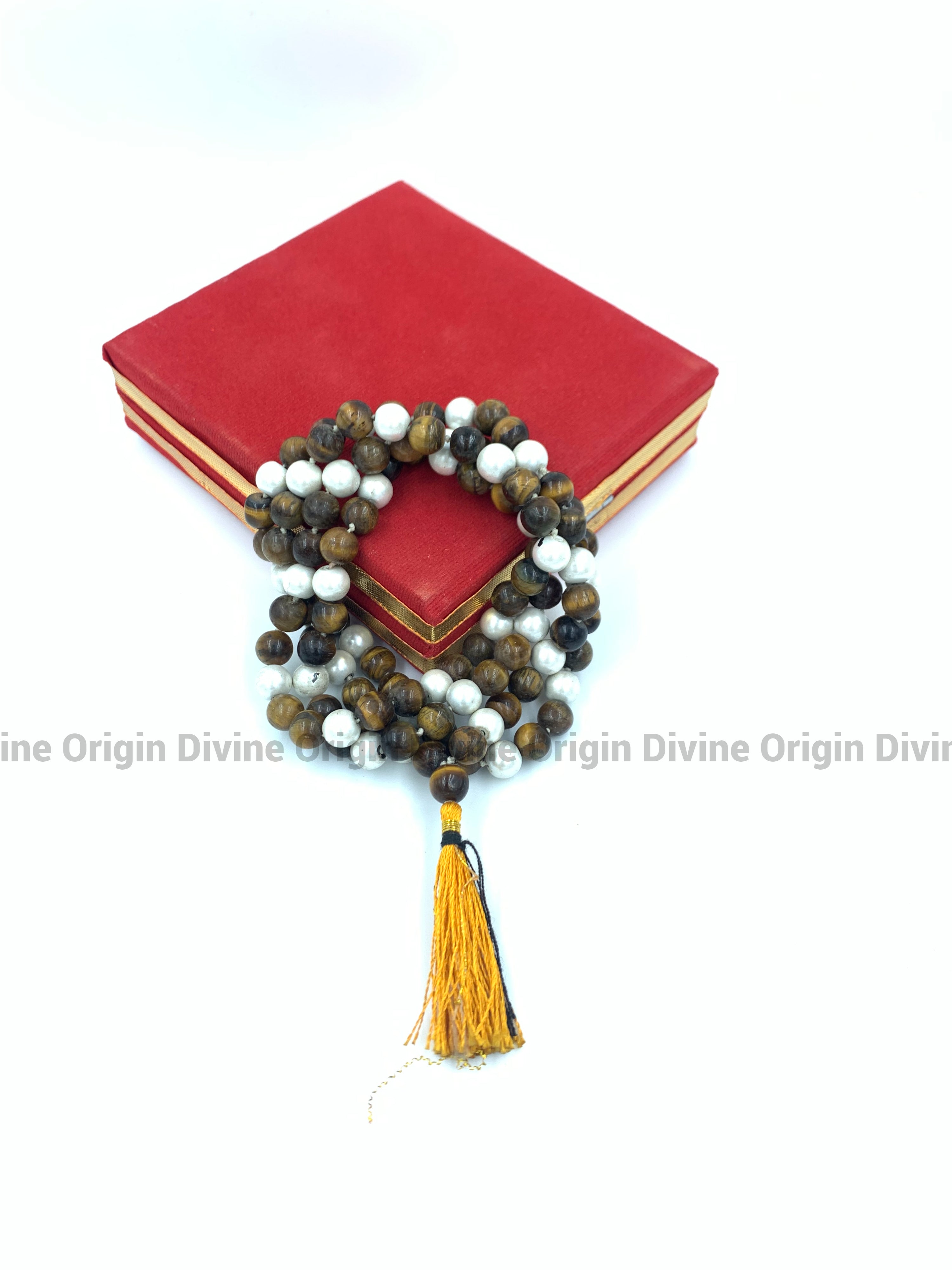 Tiger Eye Beats With White Magnate Beats Mala With Premium Pouch