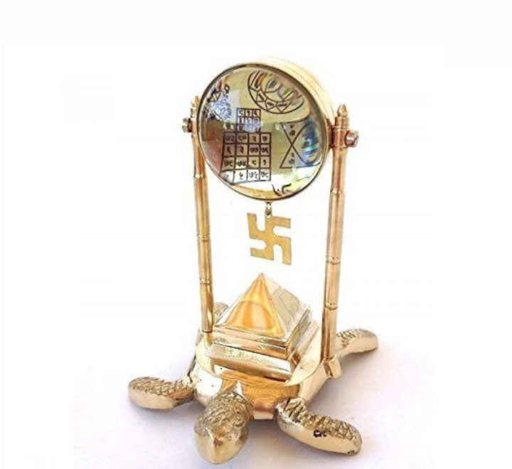 It Spreads Positivity, this works as an Anteena rest depends on Faith or Belief. But we can say that if you are buying it from "Make IN India/Pick Use-SoilMade" you should not concern about Quality, we are providing you a good Quality of Product.Tortoise Pillar Pyramid SHRI YANTRA WITH KUBER & VYAPAR YANTRA The Sri Yantra is one of humankind's most ancient symbols and represents the goddess Shri or Lakshmi, who is the embodiment of abundance in all its aspects. Lakshmi traditionally is thought to have eight forms, ashtalakshmi: financial prosperity, the wealth of excellent health, fame, the foundational wealth of spiritual knowledge, abundance of food and needs being met, love and rewarding relationships, courageous integrity, and success in all your endeavors. It also represents the union of the Masculine Divine and the Feminine Divine, as is seen in its symbolic structure of interlocking upward- and downward-pointing triangles. For many millennia the Sri Yantra has been used to invoke good fortune, wealth, health, and as an aid for meditation. Shree Yantra has a mysterious power, full of magic & called as origin point of hidden powers. The hidden powers of this yantra generated non-visible rays which gives good effect on our life & business. 2Tortoise represents for long life. At the time of "samundra manthan" Lord Vishnu takes avatar as a Tortoise for keeps Meru Parvat on Kashyap Avatar's back. It is also known as Kashyap Yantra. These models of Yantras are as beautiful Gifts & when we placed these Yantra in our house, factory, shop, office, cash box, drawing room etc. then they will remove negative effects of Vastu Shastra. These Yantra is recommended for growth in business, carrier & profession as well as increase in income and wealth.Material: BrassFor Success and wealth.